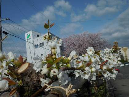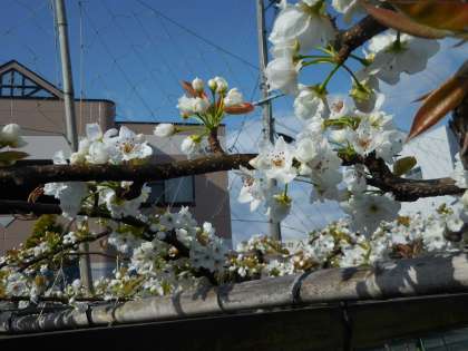 残念ながら昨日までの雨でソメイヨシノは散り始めてしまいましたが、梨の花はいよいよ満開の時期を迎えます。