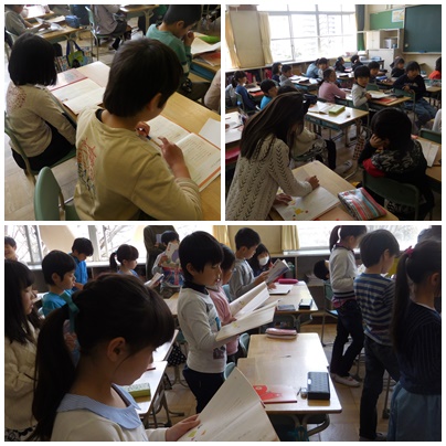 音読のお手本を聴いている子どもたちからも思わず笑い声がこぼれてきます。