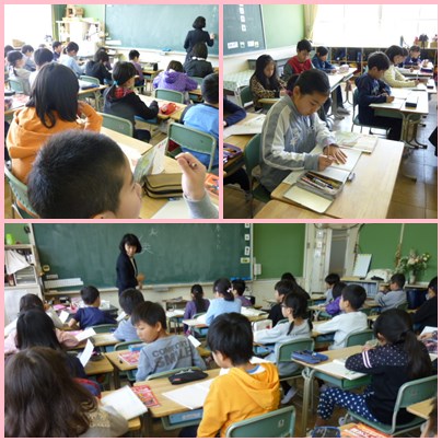 4年生は、国語で「詩をよもう」の学習をしています。「春のうた」を漢字や言葉の確認をしてから、様子を思い浮かべて読みます。
