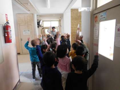 また、安全コーナーの掲示物を使って、災害時の避難の仕方を勉強しました。