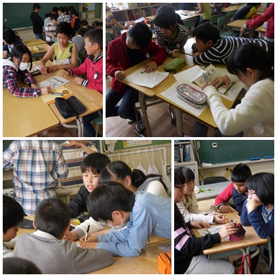 新しい学年、新しい係、どの子もやる気満々、楽しそうに掲示物をつくっています。