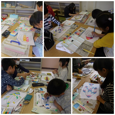 自分の気持ちをぴったり表す色を作るために混色を工夫したり、枠からはみ出さないようにきれいに塗る技術を学んだりします。