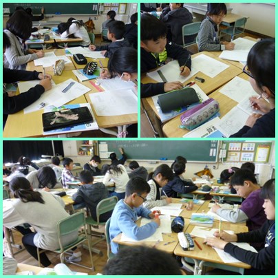 6年生は、算数で「対称な図形」を学んでいます。線について対象、点について対象という意味を理解し、実際に図形を操作して考えていきます。