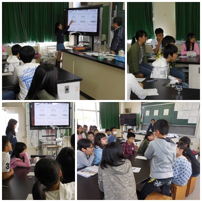 容器の中で条件を変えながらろうそくを燃やしたときの様子について話し合っています。