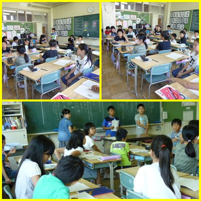 4年生の国語の「話し合いのしかたについて考えよう」の学習です。「雨の日の過ごし方について」という題で、役割をはっきりさせて話しあいました、司会者は、進行に沿って話し合いを進め、ほかの人は、立場をはっきりさせて、理由とともに発言します。互いの考えの共通点や相違点を考えながら、話し合うことを学んでいます。