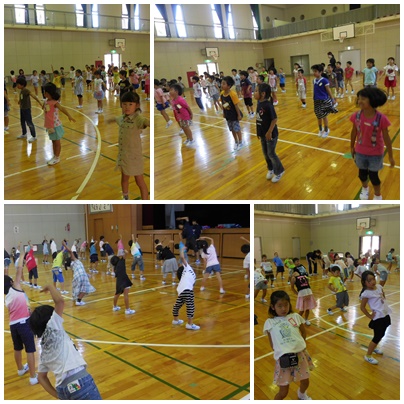 かわりに学年全員で水筒を持って体育館に集まり、レクリエーションをしました。