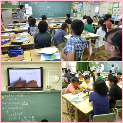 6年生は、算数で「比をつかってとこう」の学習をしています。順序よく考えたり、図をかいたりして解いていきます。