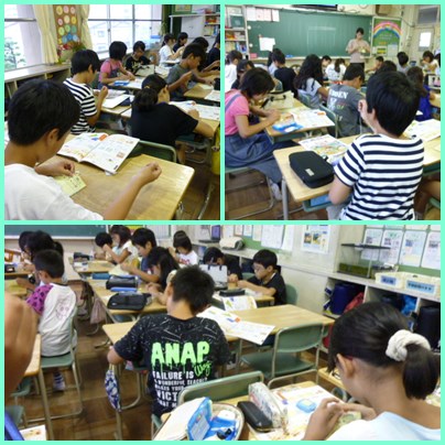 5年生の家庭科の学習です。針と糸をつかって、玉どめの練習です。細かい作業ですが集中して取り組んでいます。