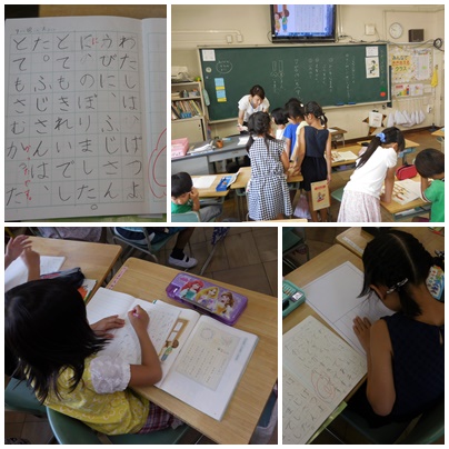 「いつ」「どこで」「だれと」「なにを」「どうした」がよくわかるように、家族旅行の思い出や友だちと遊んだことなどを書いています。