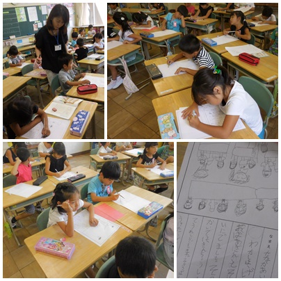みんなに知らせたい体験を思い出し、語と語、文と文のつながりに注意して絵日記を書きます。