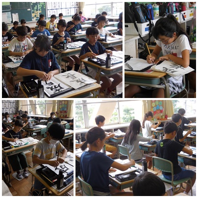 どの教室も、高学年らしい落ち着きの中で、集中して筆を動かしています。