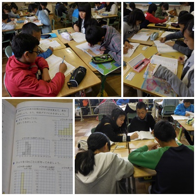 度数分布を表す表やグラフの活用の仕方やかき方を学習しています。