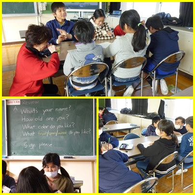 5年生の英語活動です。「What' your name?」から、始まり、好きなことなどを順に尋ねて会話を楽しみます。