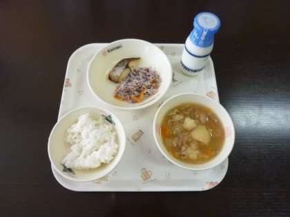 ごはん  牛乳  肉じゃが  さわらの塩こうじ焼き  もやしの赤しそあえ