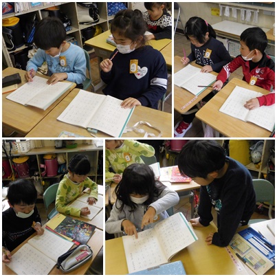 形の似ている片仮名と平仮名を見つけ、注意して書く学習です。
