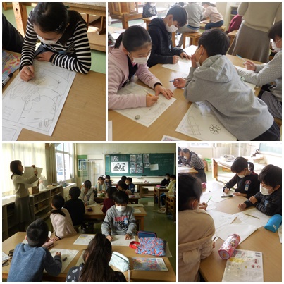 絵の具を使って描く絵とは違う版画の特徴を頭に入れながら、下絵を考えます。