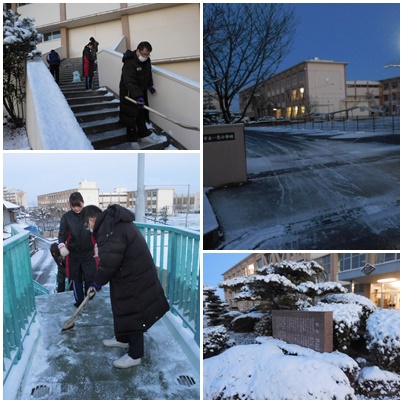 雪景色はきれいなんですが、子どもの通行には危険なので、早朝まだ暗いうちから、教員は雪かきに汗を流しました。
