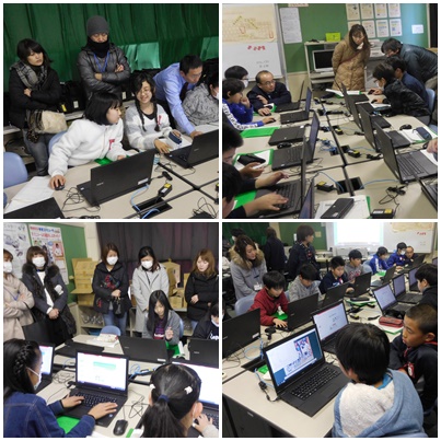 5年生の公開授業は、国語の複合語の学習、総合的な学習の時間の福祉の学習のプレゼンテーションを製作する学習でした。