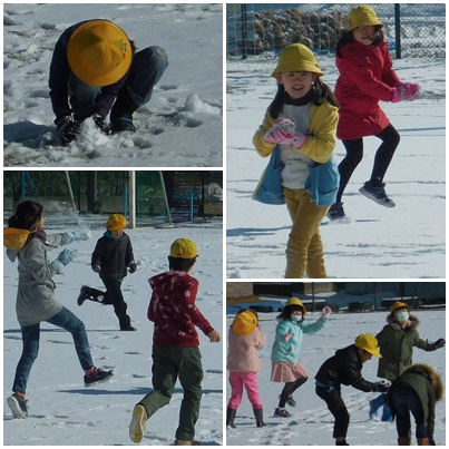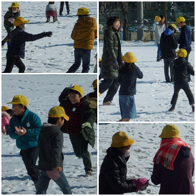 休み時間には我先にと飛び出してきて、雪合戦や雪だるまづくり。