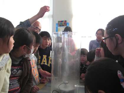 CDコマつくり、液状化実験、竜巻実験、をして、空飛ぶ種をとばしました。