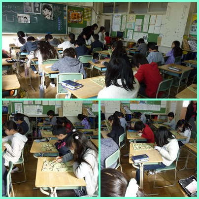 4年生の図工「版画」の学習です。いよいよ彫刻刀で彫り始めました。丁寧に、そして、けがをしないように集中して彫り進めていきます。黒と白のできあがりの様子を想像しながら、彫っていきます。