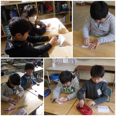 2年生の子どもたちが、卒業を祝う会や卒業式の時に廊下の壁面を飾る掲示物づくりに取り組んでいます。