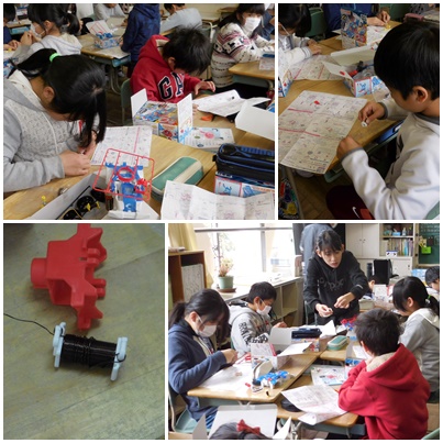 友だちや先生の手を借りながら、作業を進めています。