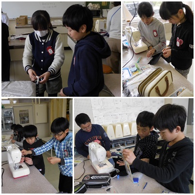 ミシンの使い方やしつけの仕方など、迷ったときには友だちと助け合います。