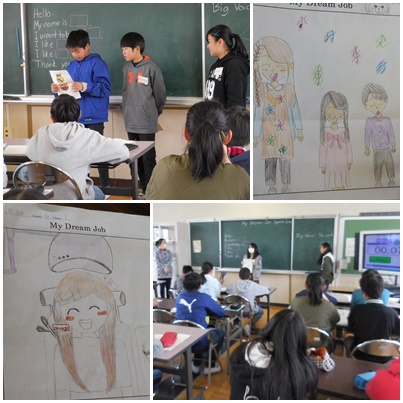 自分が好きなこと、将来つきたい職業などについて、5つの短文で話をします。