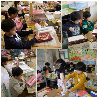 箱を組み合わせてイメージをふくらませ、つくりたいものを制作します。