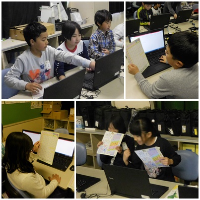 今日は、学習したことを生かして、コンピュータにローマ字で言葉を入力する練習をしています。