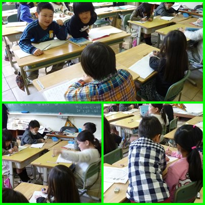 1年生の算数です。復習をして、ちょっと難しい問題にもグループで挑戦して、解いています。