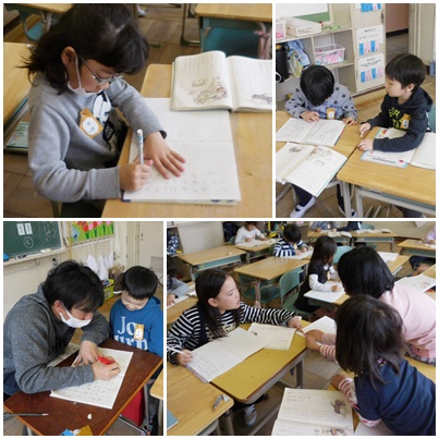 教科書の教材文を視写しながら、正しい文章の書き方を学んでいます。