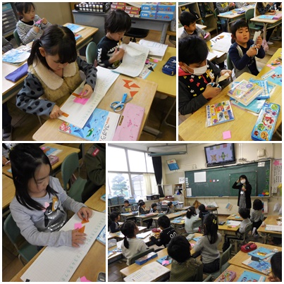 1学期の「いろいろなかたち」、2学期の「かたちづくり」と図形の勉強をしてきました。