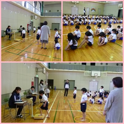 1年生の身体測定の様子です。今日は、身長と体重を測定します。きちんと説明を聞いて、測定してもらいました。