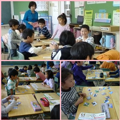 3年生は、社会で地図記号の学習をしています。今日は、地図記号のカードを使って、ペアで楽しく学んでいます。思い出したかな。