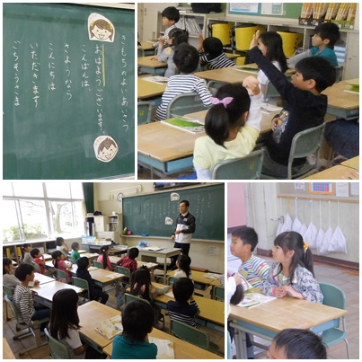 あいさつにはどんな場面のどんな言葉があるか、どんな気持ちと表情であいさつするといいのかを考えています。
