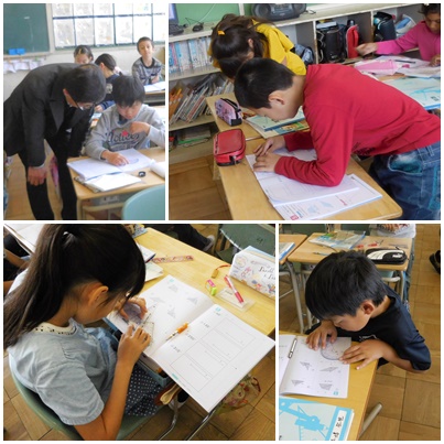 練習問題を解きながら、分度器の使い方、角の大きさの和や差など、学習内容を振り返ります。