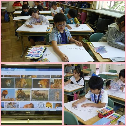 2年生の図工「ひみつのたまご」の学習です。どんなひみつのたまごがあったらおもしろいか、たまごからどんなものやお話が出てくるか、思い浮かべながら、絵を描いていきます。