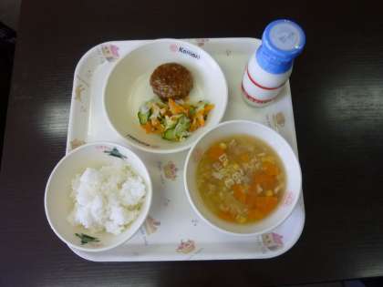 ごはん 牛乳 ABCマカロニスープ ハンバーグ フレンチサラダ