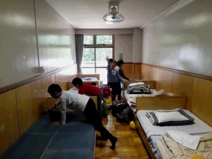 入所式のあと、シーツを受け取って部屋へ移動です。