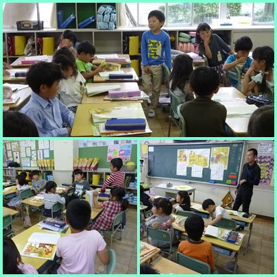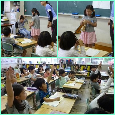 1年生の国語「はなのみち」の学習です。お話の場面の様子を思い描くために、何度も読んだり、くまさんやりすさんになって動作化したりして学んでいます。