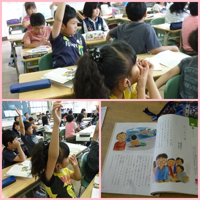 3年生の道徳「たった一言」の学習です。お話の中の主人公は、ひとりぼっちでいるクラスメイトに、声をかけようかどうか迷います。「いっしょに遊ぼう」という一言が言えず、考え、声をかけることができました。その後の笑顔の二人と周りの友達。ほっとします。正しいと思ったことを言える人になりたいという思いを持つことができますように。