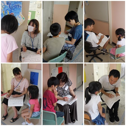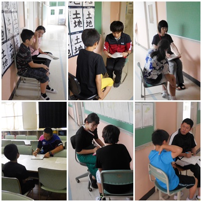 2時間目と3時間目の間の長い休み時間後に相談の時間をとり、1人1人の子どもと1対1で話をします。