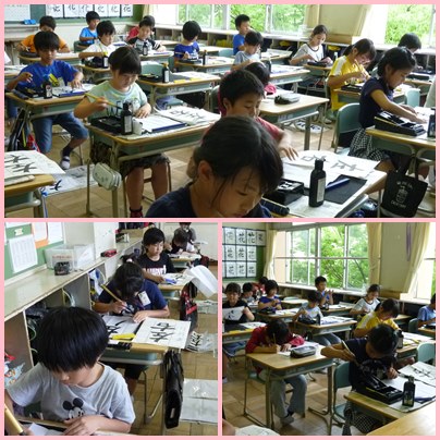 4年生の書写「左右」の学習です。左と右・・・よく似ていますが、書き順も違います。違いを意識して集中して書いています。
