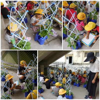 1年生がアサガオの観察をしています。