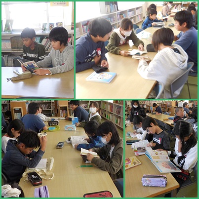 6年生が図書室で読書をしています。