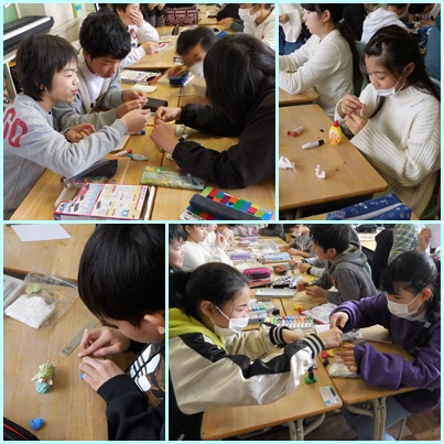 6年生がお世話になった先生方へプレゼントする手作りの品を作っています。