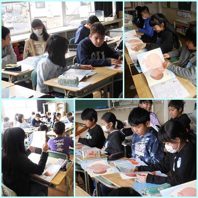 教科書についている実物大の赤ちゃんのイラストを見ながら、生まれてくる赤ちゃんの大きさを実感します。