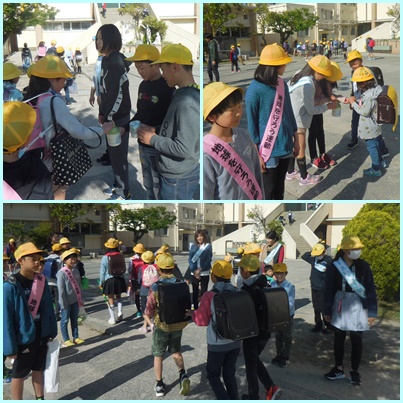 また、委員会など児童会活動も本格的にスタートし、計画委員会・代表委員会の「緑の羽根募金」、環境委員会・地球を守ろうボランティアの「地球を守ろう運動」も行われていたので、とてもたくさんの人で登校してくる子どもたちを出迎えていました。
